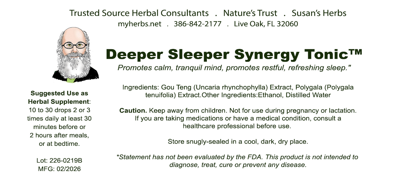 Deeper Sleeper Synergy Tonic provides you with a potent, targeted combination of evidence-based synergistic herbs speficially blended to support and promote restful, refreshing sleep.